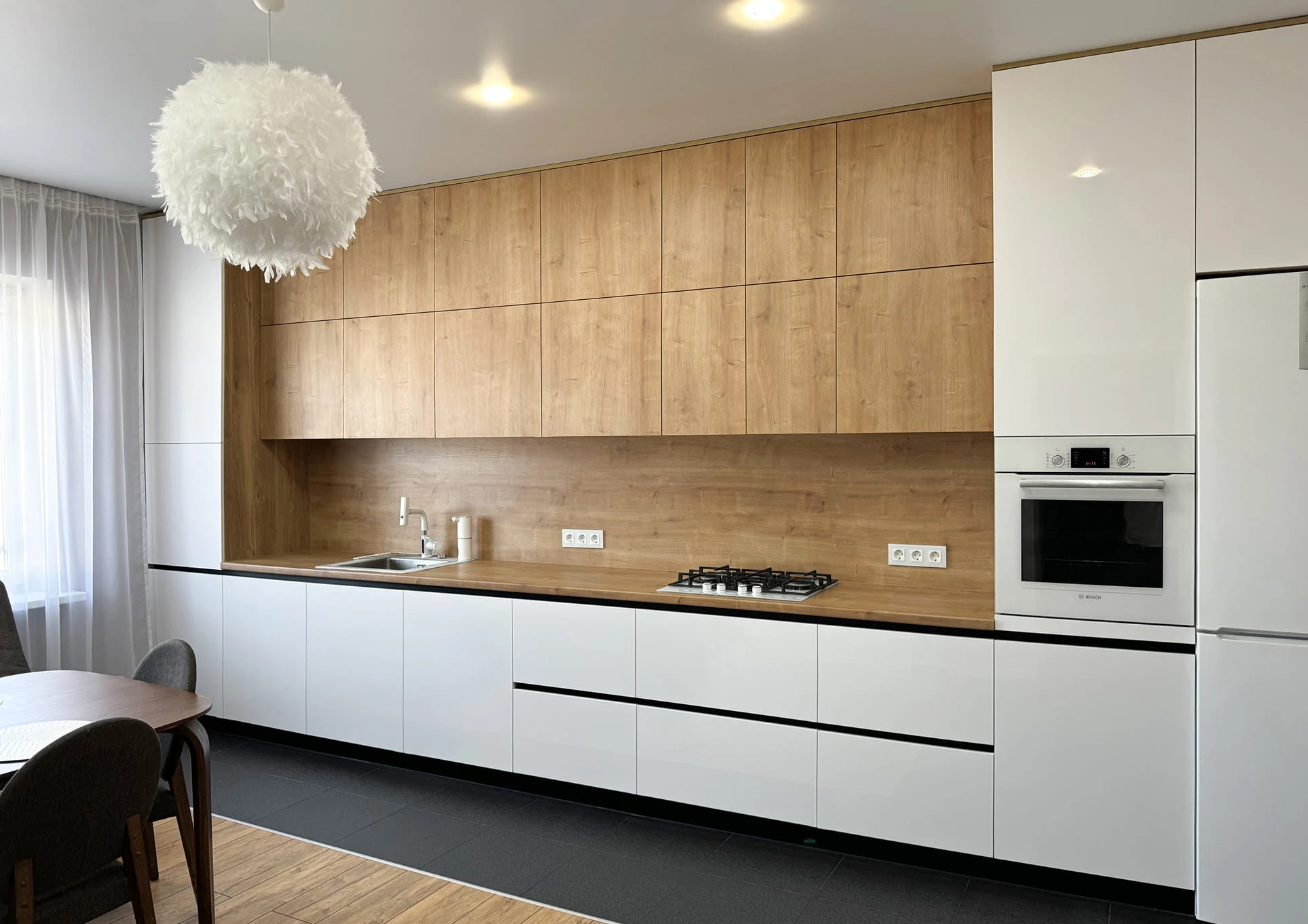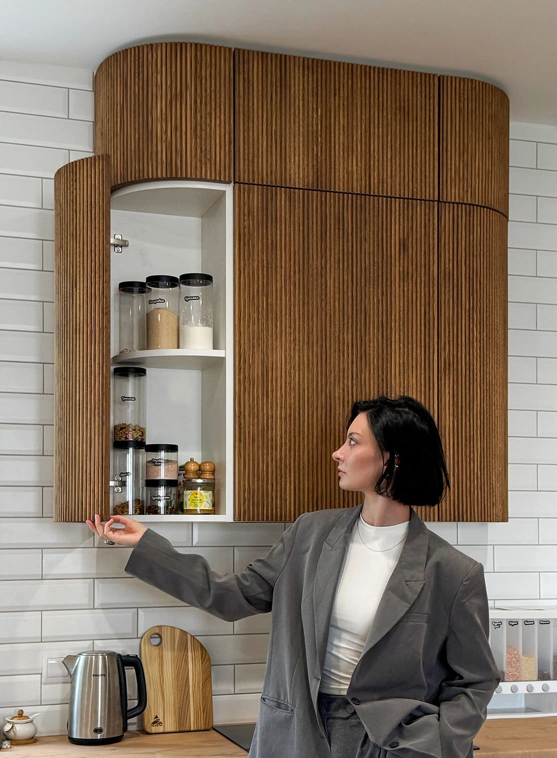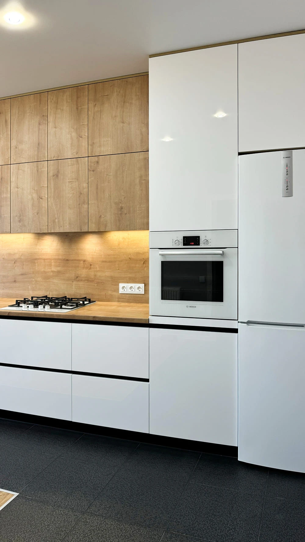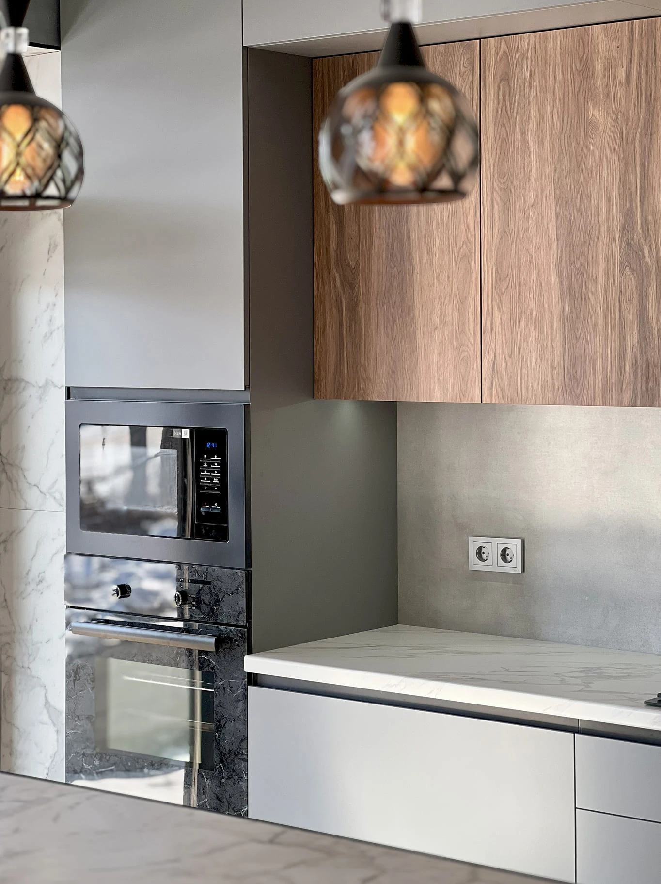 «Огромное спасибо всему коллективу! Дизайнер Мария внимательно выслушала все наши пожелания, продумала проект до мелочей. Кухня была изготовлена в срок, качество отличное. Мастера, Сергей и Ярослав, собрали кухню за один день, на неровные стены установили шкафы идеально ровно! Спасибо за кухню мечты!»