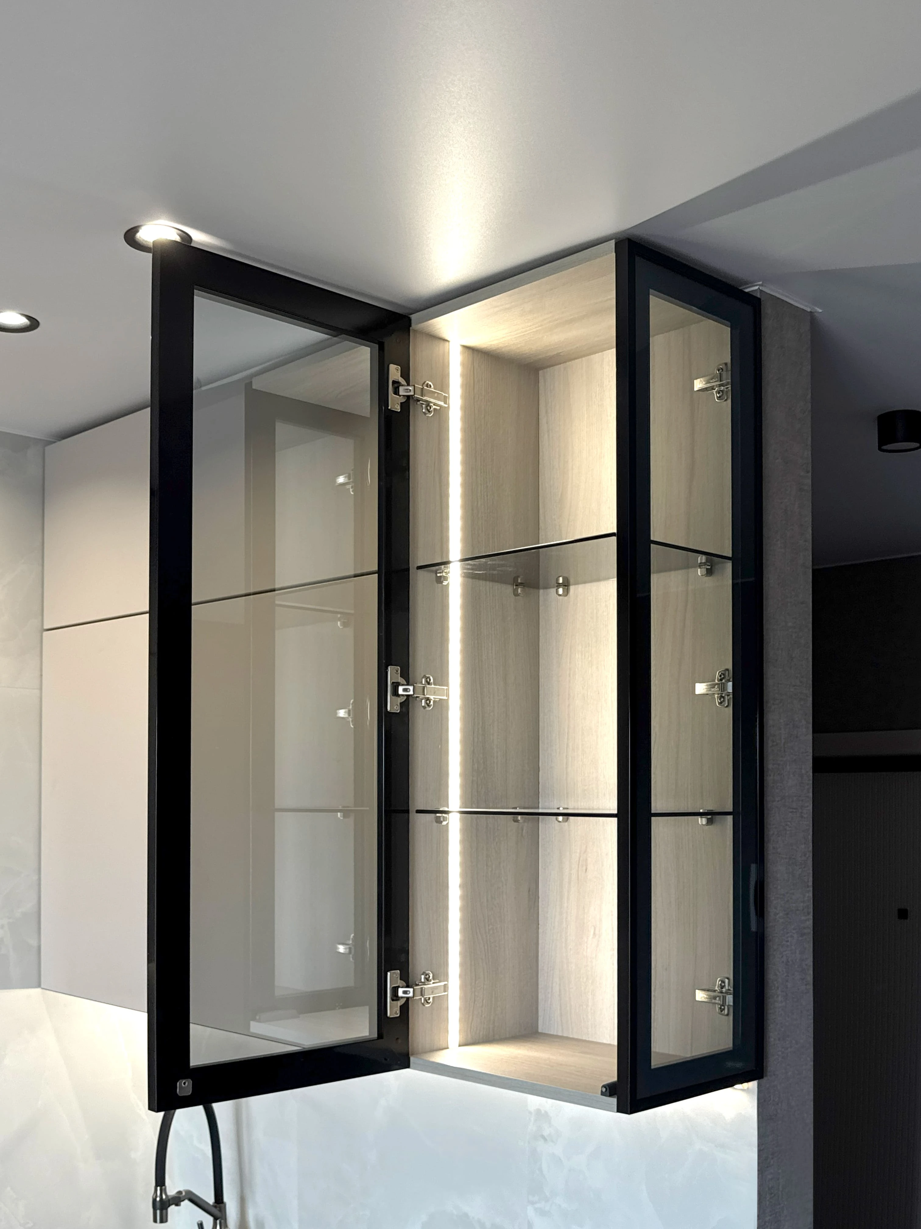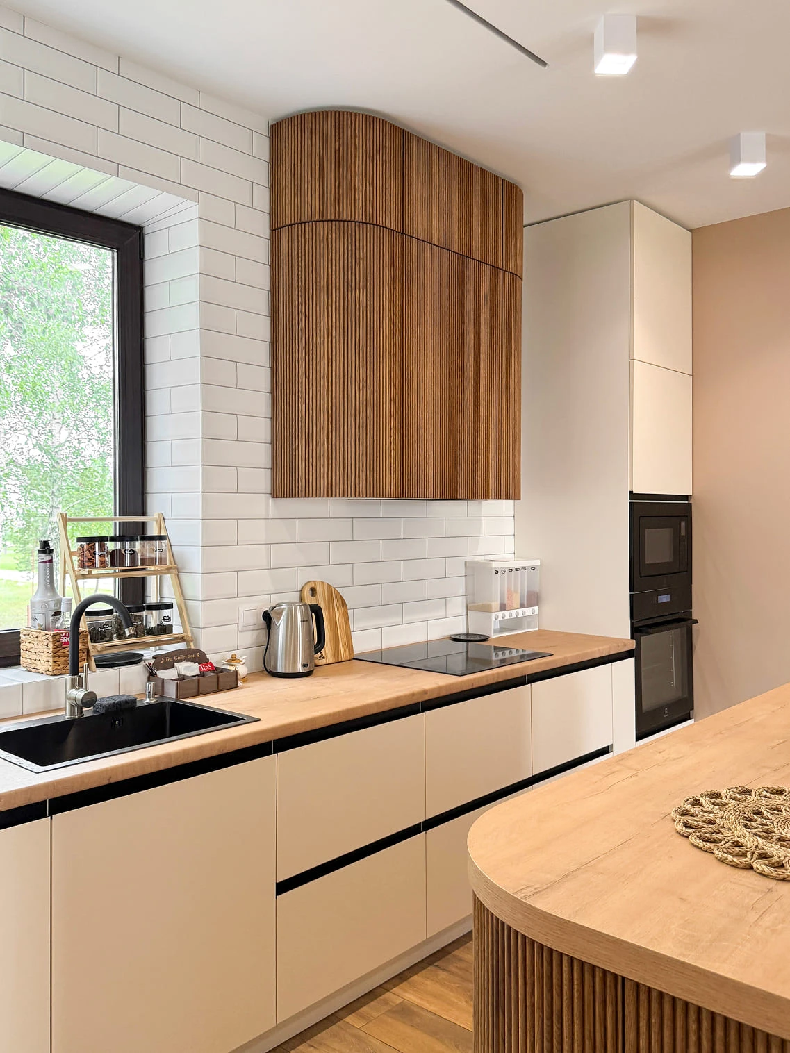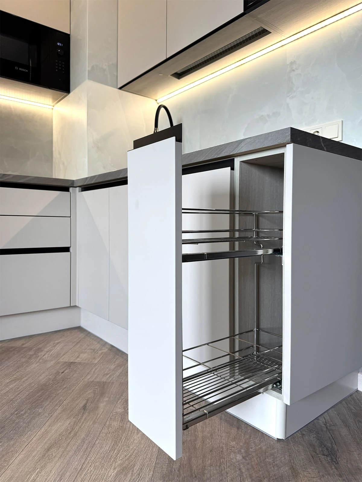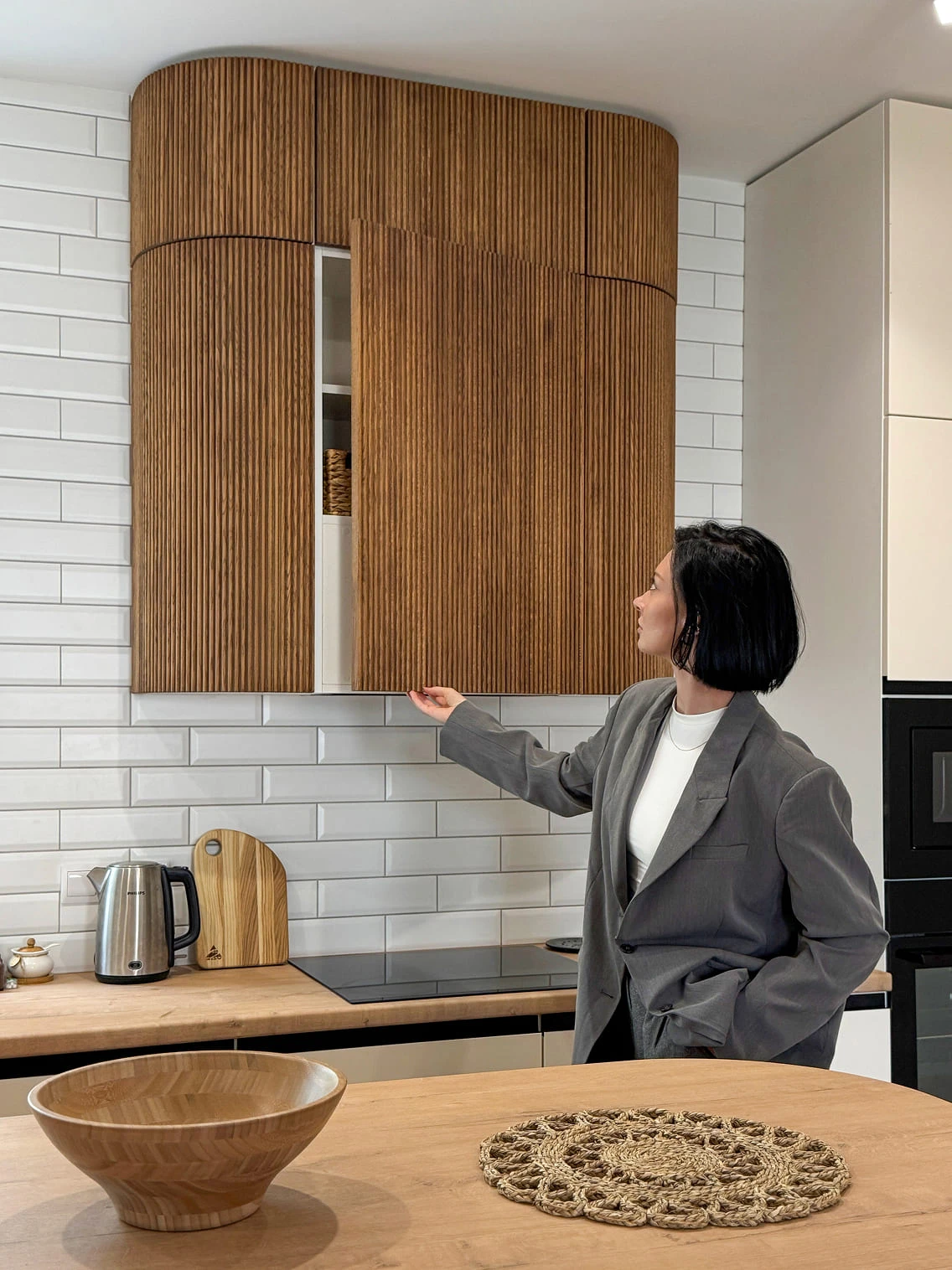 «Огромное спасибо всему коллективу! Дизайнер Мария внимательно выслушала все наши пожелания, продумала проект до мелочей. Кухня была изготовлена в срок, качество отличное. Мастера, Сергей и Ярослав, собрали кухню за один день, на неровные стены установили шкафы идеально ровно! Спасибо за кухню мечты!»