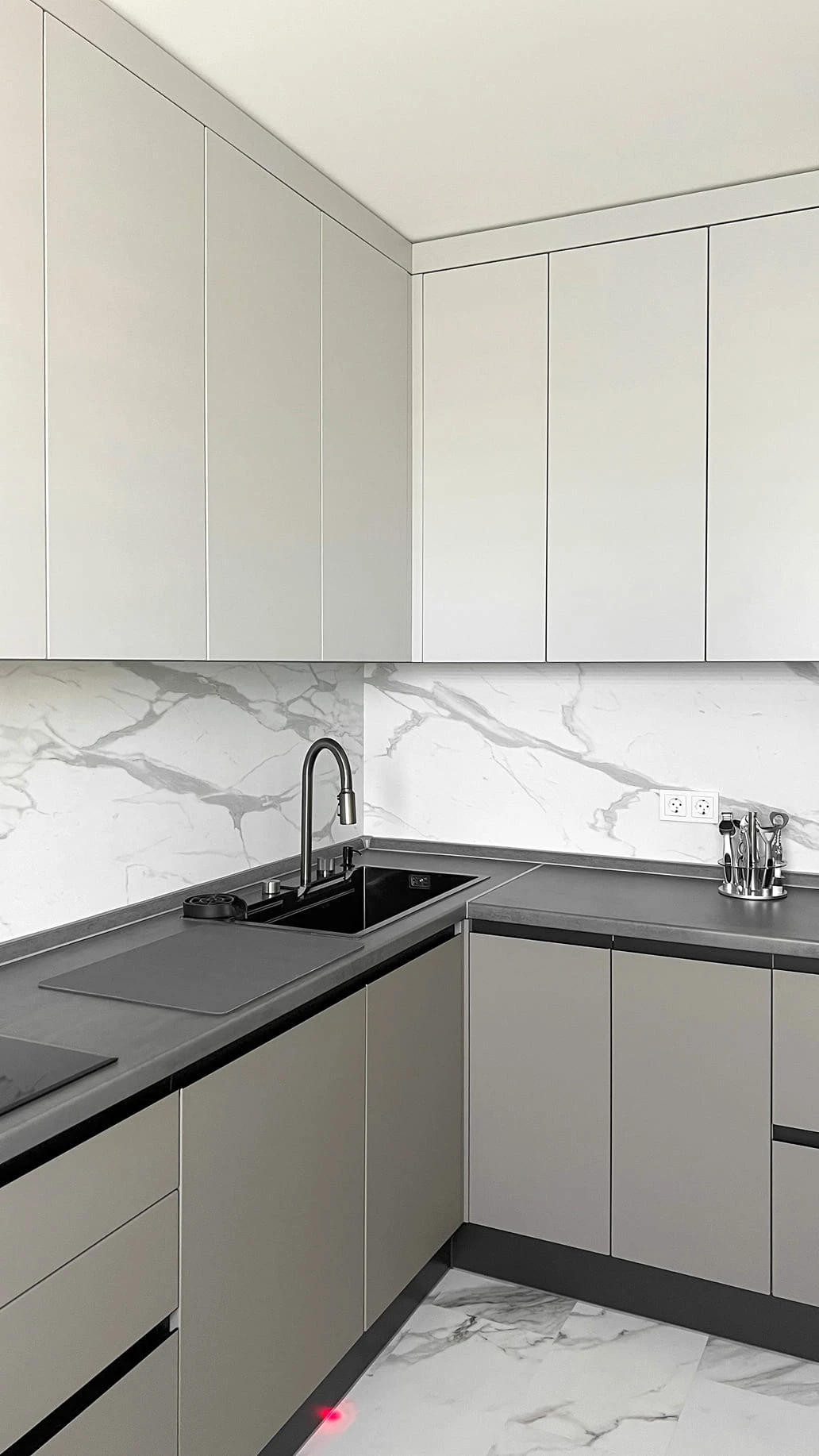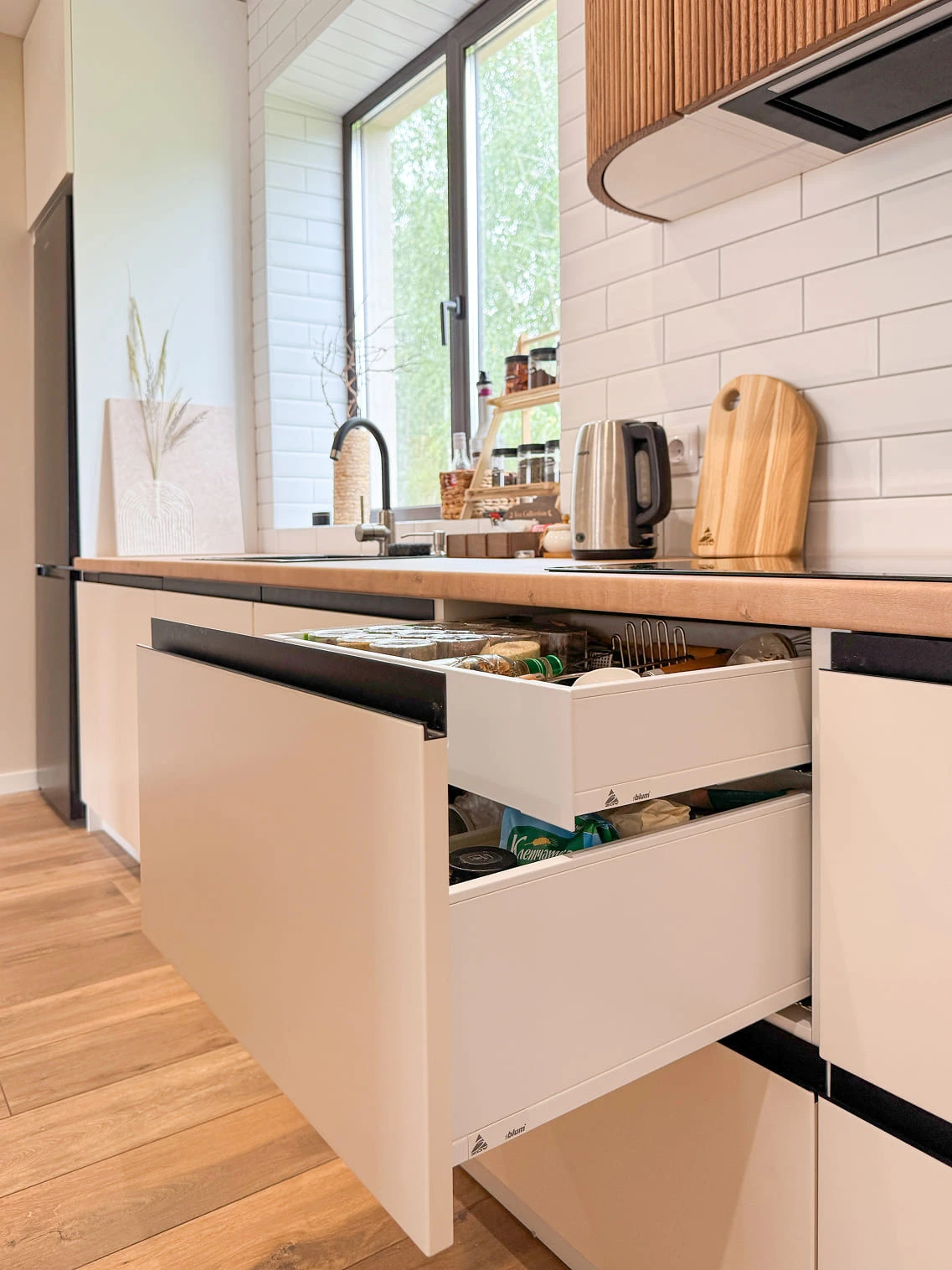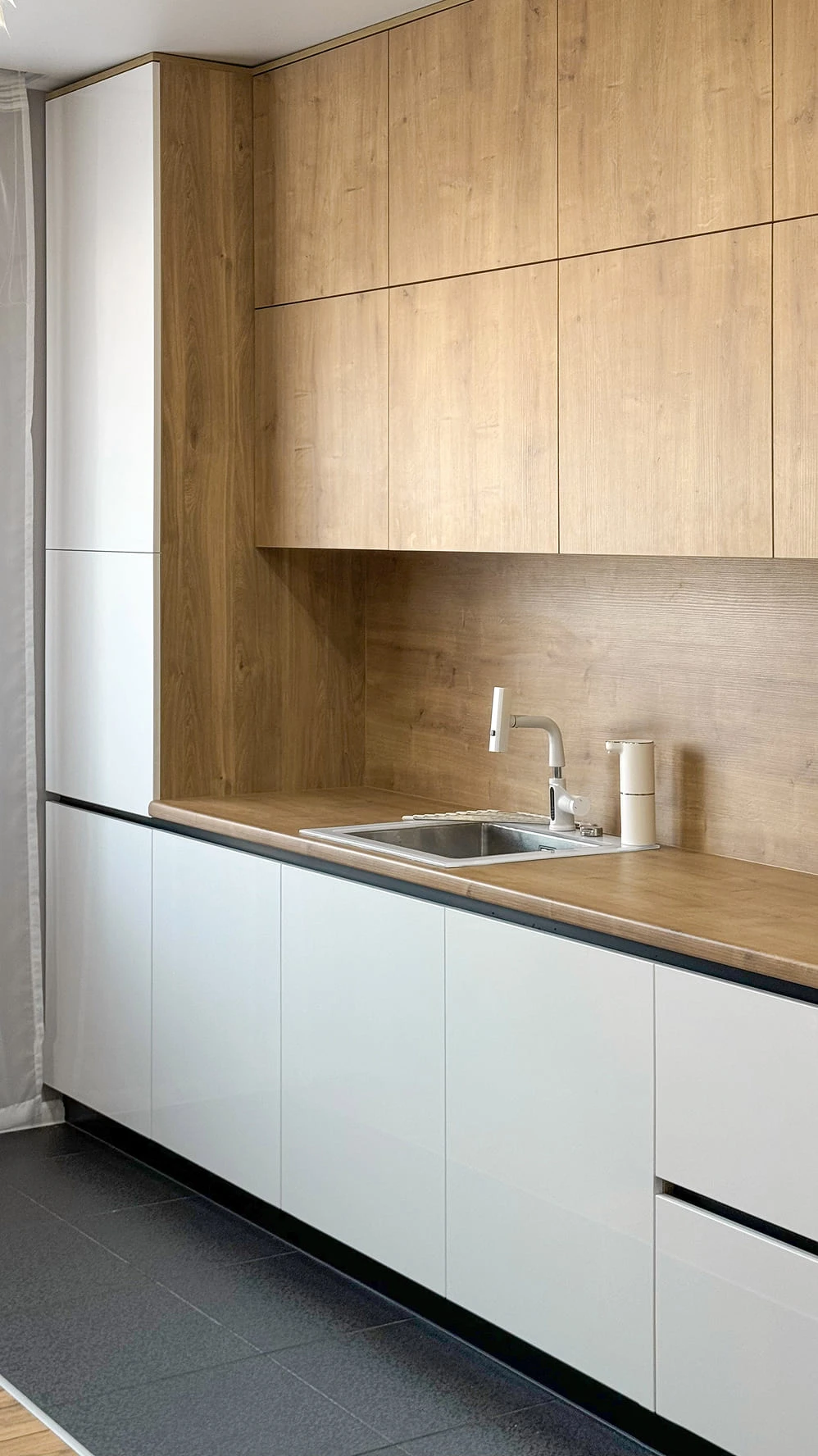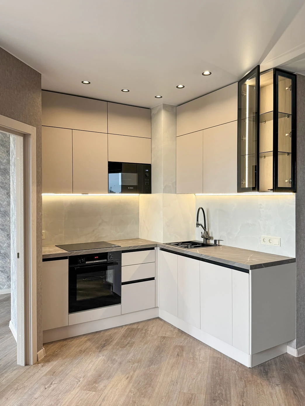 «Огромное спасибо всему коллективу! Дизайнер Мария внимательно выслушала все наши пожелания, продумала проект до мелочей. Кухня была изготовлена в срок, качество отличное. Мастера, Сергей и Ярослав, собрали кухню за один день, на неровные стены установили шкафы идеально ровно! Спасибо за кухню мечты!»